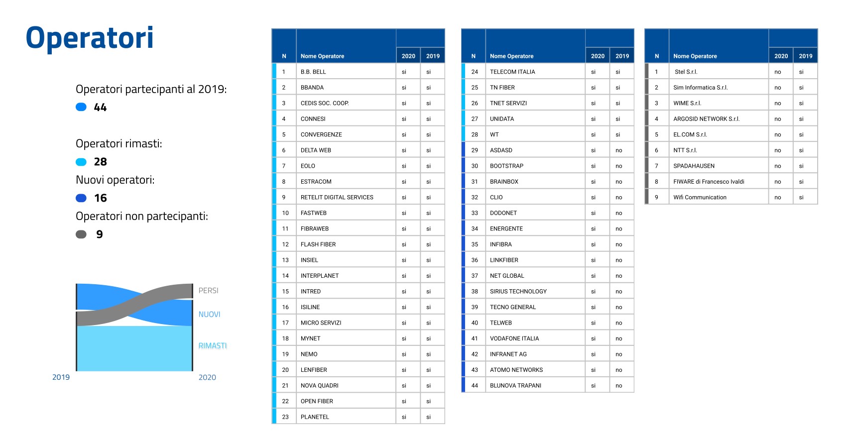 - hanno fornito dati di copertura 44 operatori, di cui 16 nuovi rispetto alla consultazione 2019;