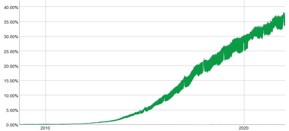 La diffusione del protocollo IPv6 è iniziata a metà degli anni 2000 ma il processo, ovviamente ancora in corso, ha avuto una progressione lentissima. Il motivo principale è che la maggior parte degli ISP non vedono benefici immediati (e invece complessità e costi aggiuntivi) nella migrazione a IPv6, e allo stesso modo i proprietari di siti web non percepiscono l’urgenza di configurare IPv6 considerando che è poco usato e che i server sono comunque sempre accessibili via IPv4.22